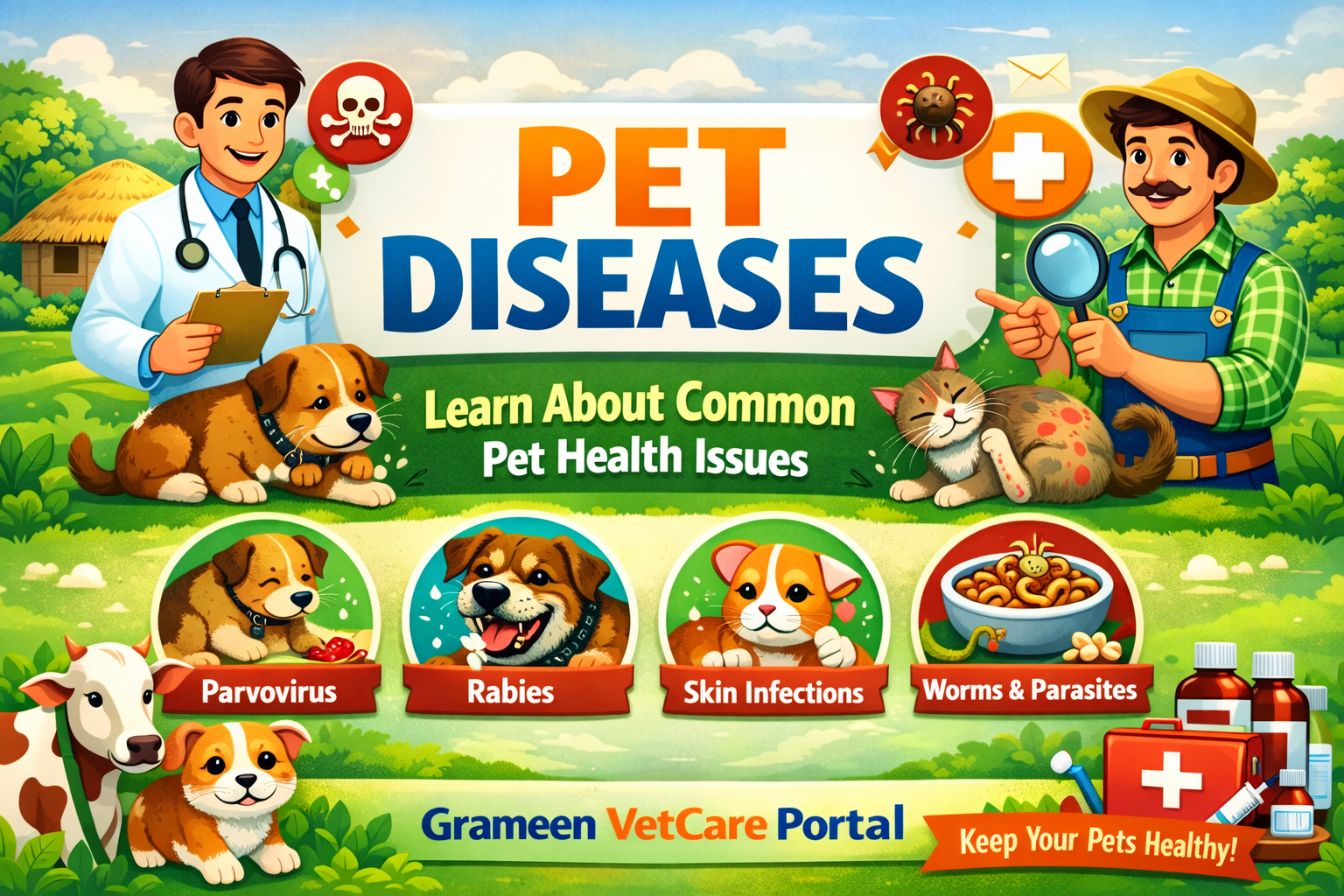 Pet diseases are health problems that affect animals such as dogs, cats, and other pets. These diseases may be caused by viruses, bacteria, parasites, poor nutrition, or environmental conditions. Since pets cannot express pain verbally, pet owners must carefully observe any changes in behavior or physical condition. Early detection and proper veterinary care are essential to keep pets healthy and prevent serious illness.